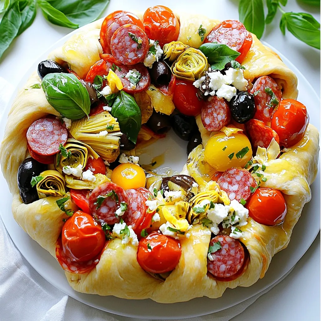 You can easily make this wreath vegetarian. Swap out the salami for more veggies. Try bell peppers, zucchini, or even spinach. These add flavor without meat. Use more feta and mozzarella for a cheesy delight. You could also add marinated mushrooms for an extra twist. This keeps the dish colorful and tasty.