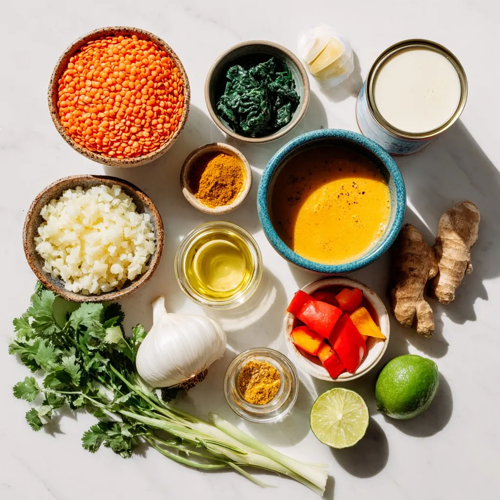 A delicious and hearty vegan curry made with red lentils, coconut milk, and spices.