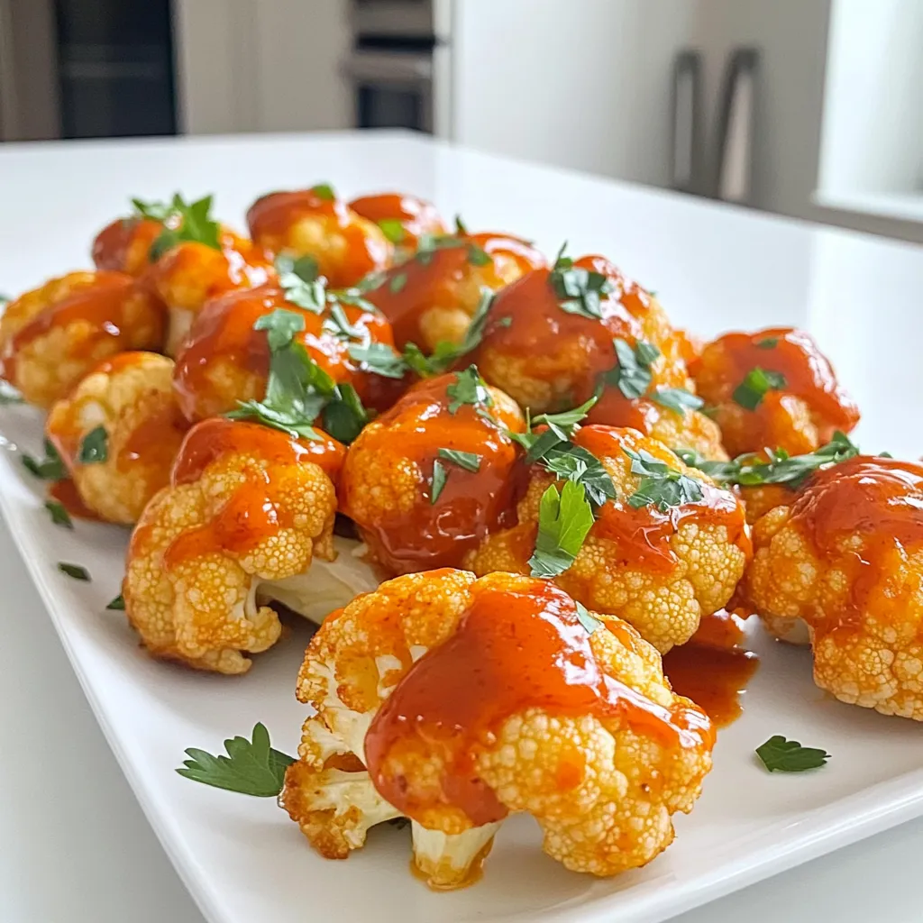 Serve your buffalo cauliflower with celery sticks and ranch dressing. These sides add a nice crunch and coolness to the dish. For a pop of color, use a bright platter. Arrange the cauliflower in a fun pattern. A sprinkle of fresh parsley on top makes it look even more appealing.