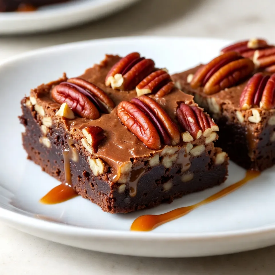 To make these rich brownies, gather the following items: - 1 cup (2 sticks) unsalted butter, plus extra for greasing - 2 cups granulated sugar - 4 large eggs, at room temperature - 1 tablespoon pure vanilla extract - 1 cup all-purpose flour - 1 cup unsweetened cocoa powder - 1 teaspoon baking powder - 1/2 teaspoon salt - 1 cup semi-sweet chocolate chips - 1 cup pecans, roughly chopped, plus extra for topping - 1 cup caramel sauce (store-bought or homemade, for drizzling) These ingredients blend to create a luscious, gooey treat. The butter provides fat for moisture, while the sugar adds sweetness. The eggs help bind everything together, and the cocoa powder gives that rich chocolate flavor. Feel free to play with your brownies! You can add: - Sea salt for a sweet and salty taste - Espresso powder for a coffee kick - Different nuts like walnuts or almonds - Dark chocolate instead of semi-sweet Customizing makes your brownies unique. Try adding your favorite flavors! Using quality ingredients matters. I recommend: - Plugrá or Kerrygold for butter - Domino for granulated sugar - Ghirardelli or Guittard for cocoa powder and chocolate chips - Smucker's for caramel sauce These brands often ensure better taste and texture. Always check for freshness! {{ingredient_image_2}} Start by preheating your oven to 350°F (175°C). You’ll need a 9x13 inch baking pan. Grease it well with butter. You can also line it with parchment paper. This makes it easy to lift the brownies out later. In a medium saucepan, melt 1 cup of unsalted butter over low heat. Once it’s all melted, stir in 2 cups of granulated sugar until mixed well. Take the pan off the heat and let it cool for about 5 minutes. Then, add 4 large eggs, one at a time. Whisk them in fully before adding the next one. Finally, pour in 1 tablespoon of pure vanilla extract. Mix until it’s smooth and glossy. In a separate bowl, sift together 1 cup of all-purpose flour, 1 cup of unsweetened cocoa powder, 1 teaspoon of baking powder, and 1/2 teaspoon of salt. Gradually fold this dry mix into the wet mixture. Use a spatula to combine until there’s no dry flour left. Be careful not to overmix, as that can make the brownies tough. Pour half of the brownie batter into your prepared pan. Spread it evenly with your spatula. Drizzle half of the 1 cup of caramel sauce over this layer. Then, gently spoon the remaining brownie batter on top. Spread it carefully to cover the caramel. Drizzle the rest of the caramel sauce over the top. Use a knife to swirl it lightly for a marbled look. If you saved some pecans, sprinkle them on top for extra crunch. Bake the brownies for 30-35 minutes. Check them with a toothpick. It should come out with a few moist crumbs. Let them cool on a wire rack for at least 15 minutes before cutting into squares. To get moist brownies, start with room temperature eggs. Cold eggs can make the batter dense. When mixing your ingredients, avoid overmixing. Mix just until combined, and you will see a smooth batter. Also, check your oven temperature with a thermometer. An uneven or hot oven can dry out your brownies. Lastly, let them cool in the pan for a bit. This keeps them soft and chewy. When drizzling caramel, warm it slightly. This makes it easier to pour and swirl. If you use store-bought caramel, heat it in the microwave for 10 to 15 seconds. Use a spoon or squeeze bottle for better control. Start with a small amount and add more as needed. Swirling the caramel gently into the brownie batter creates a lovely look and flavor. One common mistake is not greasing the pan. Always grease or line your pan. This helps you remove the brownies easily. Another mistake is not checking for doneness. A toothpick should come out with a few moist crumbs. Lastly, don’t skip the pecan topping. It adds crunch and enhances the taste. Enjoy these tips as you bake your treats! Pro Tips Use Room Temperature Eggs: Allowing your eggs to come to room temperature helps them incorporate more easily into the batter, resulting in a smoother texture. Don’t Overmix the Batter: Mix the batter just until the dry ingredients are combined. Overmixing can lead to dense brownies instead of the desired fudgy texture. Swirl the Caramel Gently: When creating the marbled effect with caramel, use a knife to swirl it lightly. This prevents the caramel from sinking too deep into the brownies. Cool Before Cutting: Allow the brownies to cool in the pan for at least 15 minutes before cutting. This helps them firm up, making them easier to slice into neat squares. {{image_4}} You can switch up the nuts in your brownies. While pecans give a great crunch, walnuts or almonds work well too. Walnuts add a rich, earthy flavor. Almonds bring a nice sweetness. Try mixing different nuts for fun textures. Just chop them roughly so they blend in well. Chocolate is key in these brownies. You can use dark chocolate for a richer taste. Milk chocolate can make them sweeter. You might even try white chocolate chips for a creamy twist. Mixing different chocolates can create new flavors. Use what you love! Want to make your brownies pop? Adding espresso powder can enhance the chocolate flavor. Just a bit gives a nice depth. You can also sprinkle sea salt on top before baking. This adds a great contrast to the sweetness. Get creative and mix in your favorite flavors! To keep your brownies fresh, store them in an airtight container. Make sure they cool completely before placing them inside. This will help keep them moist and tasty. You can store them at room temperature for up to four days. If you want to keep them longer, consider freezing them. Freezing is a great way to save your brownies for later. First, cut them into squares. Wrap each piece in plastic wrap. Then, place them in a freezer bag or airtight container. These brownies can stay fresh in the freezer for about three months. When you're ready to enjoy them, just thaw them overnight in the fridge. To reheat your brownies, preheat y