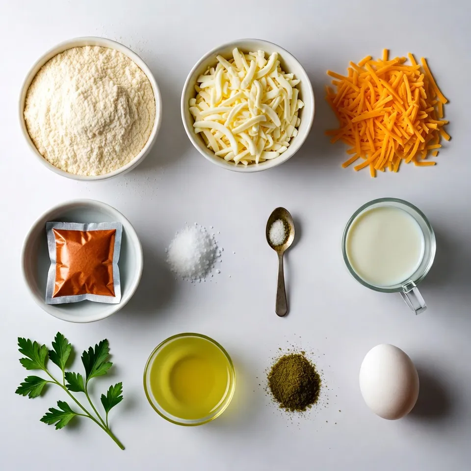 To create Cheesy Pull-Apart Christmas Tree Bread, you need simple ingredients. First, gather two cups of all-purpose flour. This forms the base of your dough. You’ll also need one cup each of shredded mozzarella and cheddar cheese. These cheeses bring the gooey, cheesy goodness.