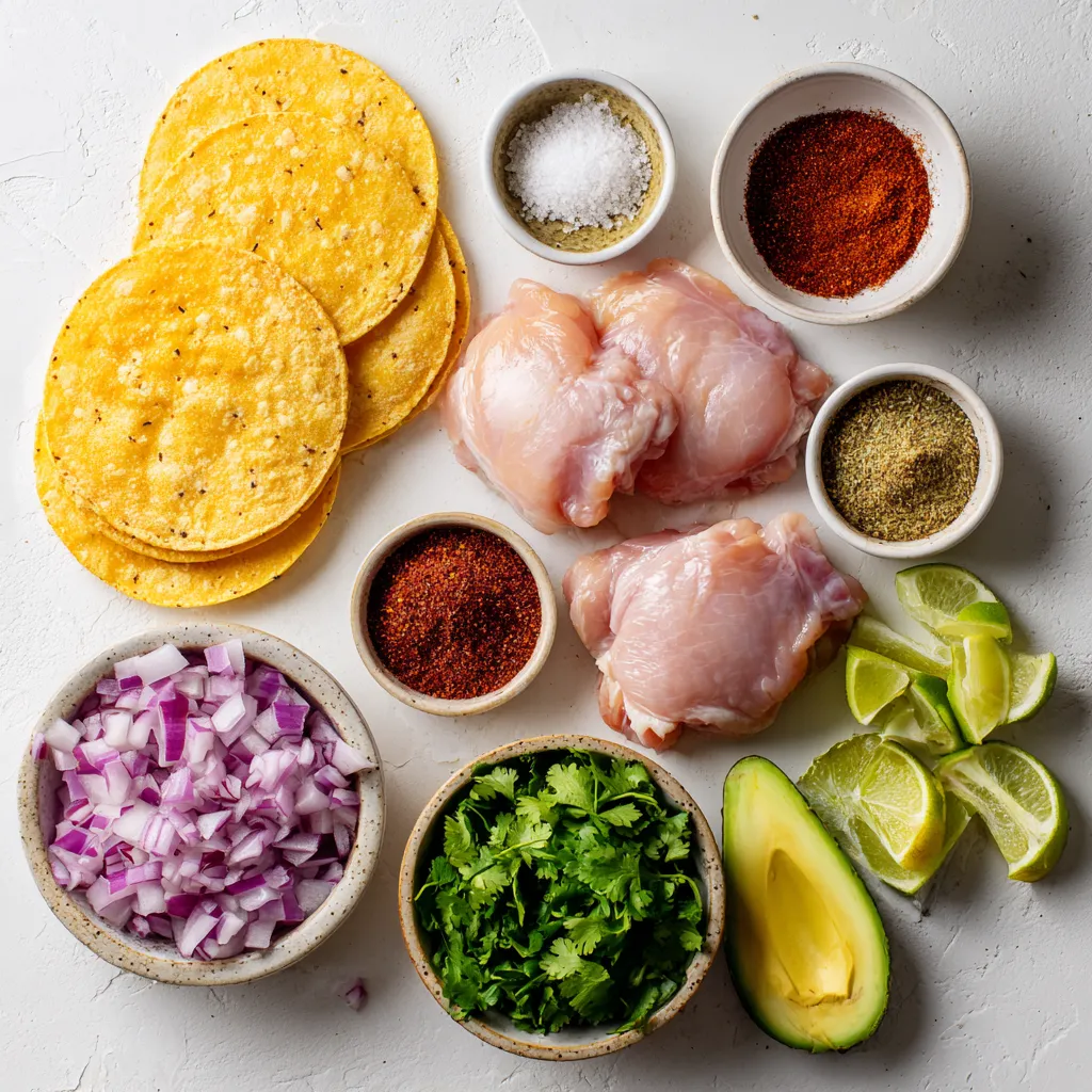 These ingredients create a great base for your tacos. The chicken thighs bring the right amount of juiciness and flavor. The corn tortillas add a nice texture.
