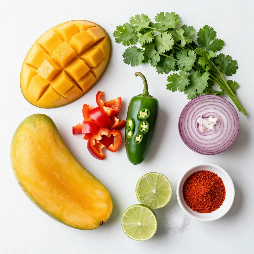 For a vibrant Chili Lime Mango Salsa, you need just a few fresh ingredients: