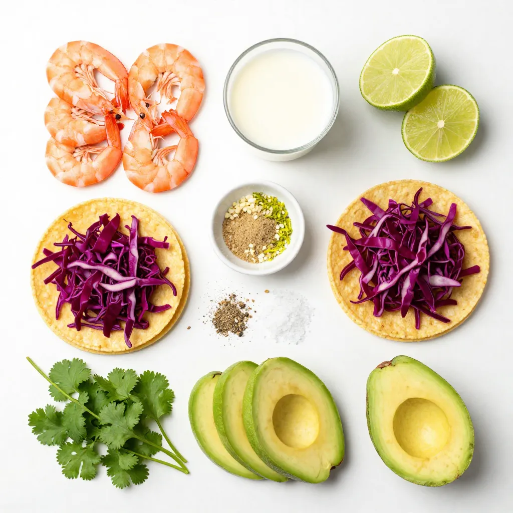 For these tacos, you need fresh shrimp. Use one pound of shrimp, peeled and deveined. The marinade is key to flavor. Combine one cup of creamy coconut milk with two tablespoons of lime juice. Add a teaspoon of lime zest, garlic powder, and ground cumin. You will also need salt and black pepper to taste.