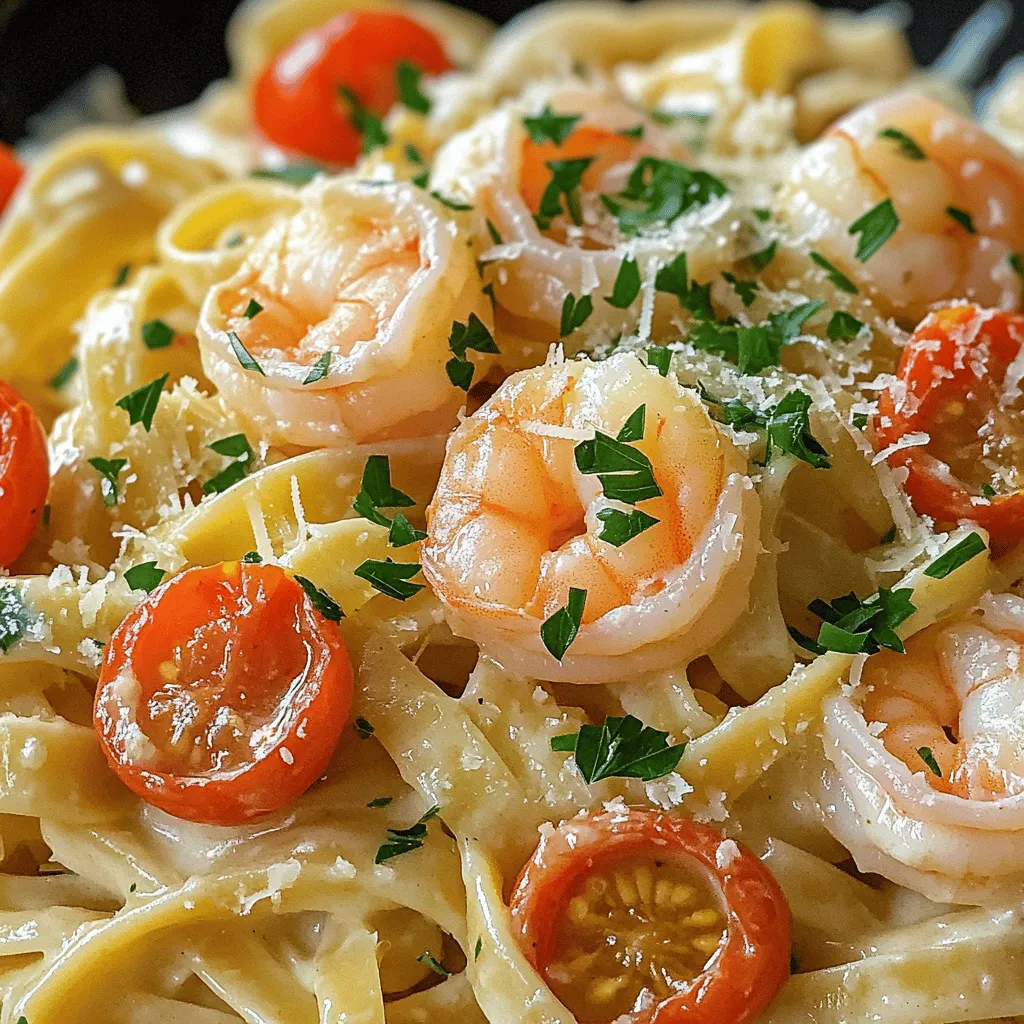 Each ingredient adds its unique flavor. The shrimp brings a sweet and briny taste. The garlic gives a nice kick, while the heavy cream adds richness. Cherry tomatoes offer freshness and sweetness.