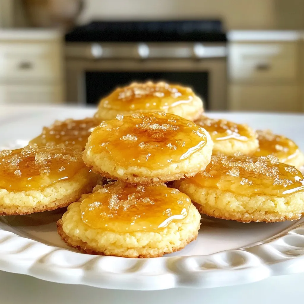 Arrange the cookies on a decorative platter, highlighting their beautiful caramelized tops. For an extra touch of elegance, garnish the serving dish with fresh berries or edible flowers.