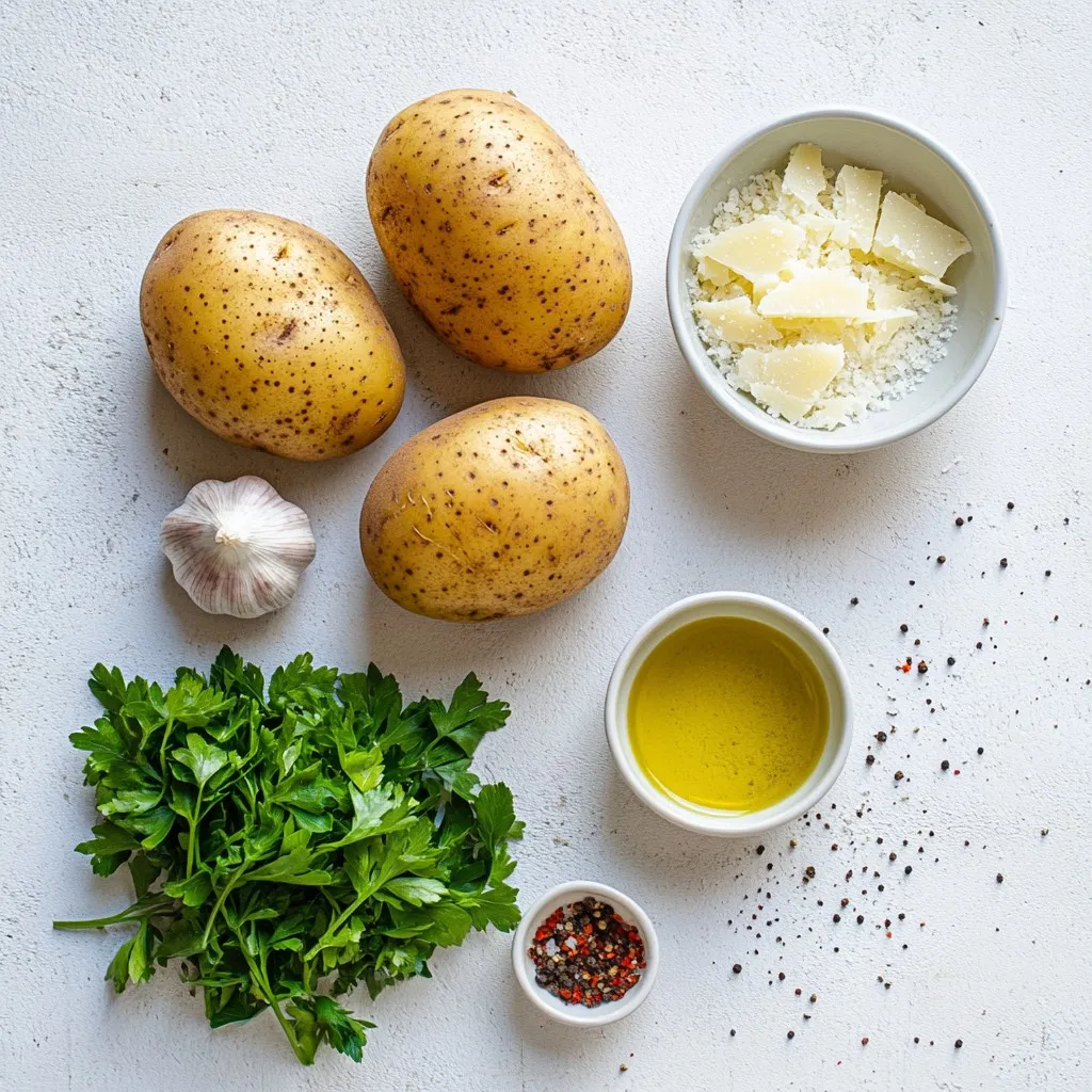The main ingredients for garlic Parmesan fries are simple yet vital. Russet potatoes are the best choice. Their starchy texture gives the fries a crispy bite. You need four large ones to make a good batch. Olive oil enhances flavor and helps with crispness. Four tablespoons coat the fries well. Garlic adds a punch. I use four cloves, finely minced, to get that bold taste. Finally, fresh Parmesan cheese brings richness. A cup of it is perfect for melting over the hot fries.