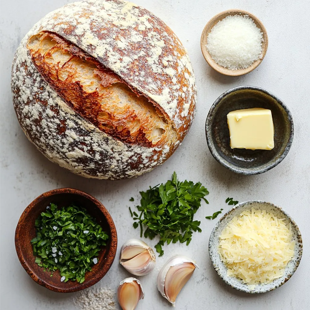 Gathering the right ingredients is key. Start with a loaf of fresh artisan bread. I prefer round or sourdough for the best texture. Next, melt 6 tablespoons of unsalted butter. This adds richness and helps the garlic flavor shine.
