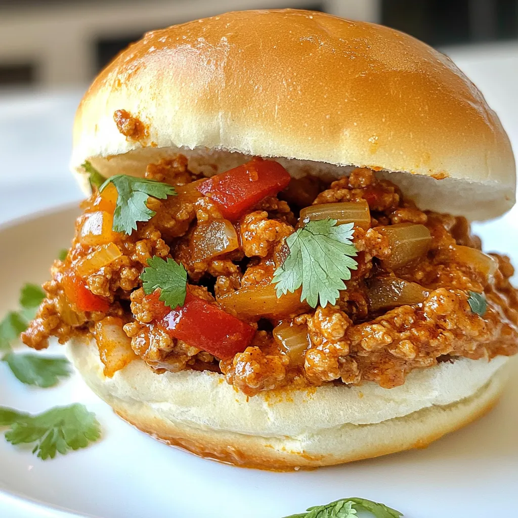 Assemble your Sloppy Joes by spooning a generous portion of the zesty chicken mixture onto the bottom half of each bun. If you’re using cilantro, sprinkle a few fresh leaves on top for added flavor and color.