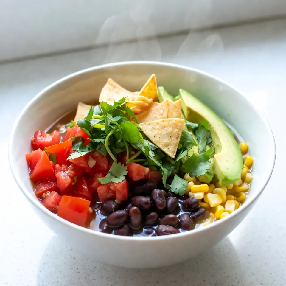Serve the warm soup in bowls, generously topped with crushed tortilla chips for crunch, a sprinkle of fresh cilantro for color, and slices of creamy avocado for a deliciously rich contrast.