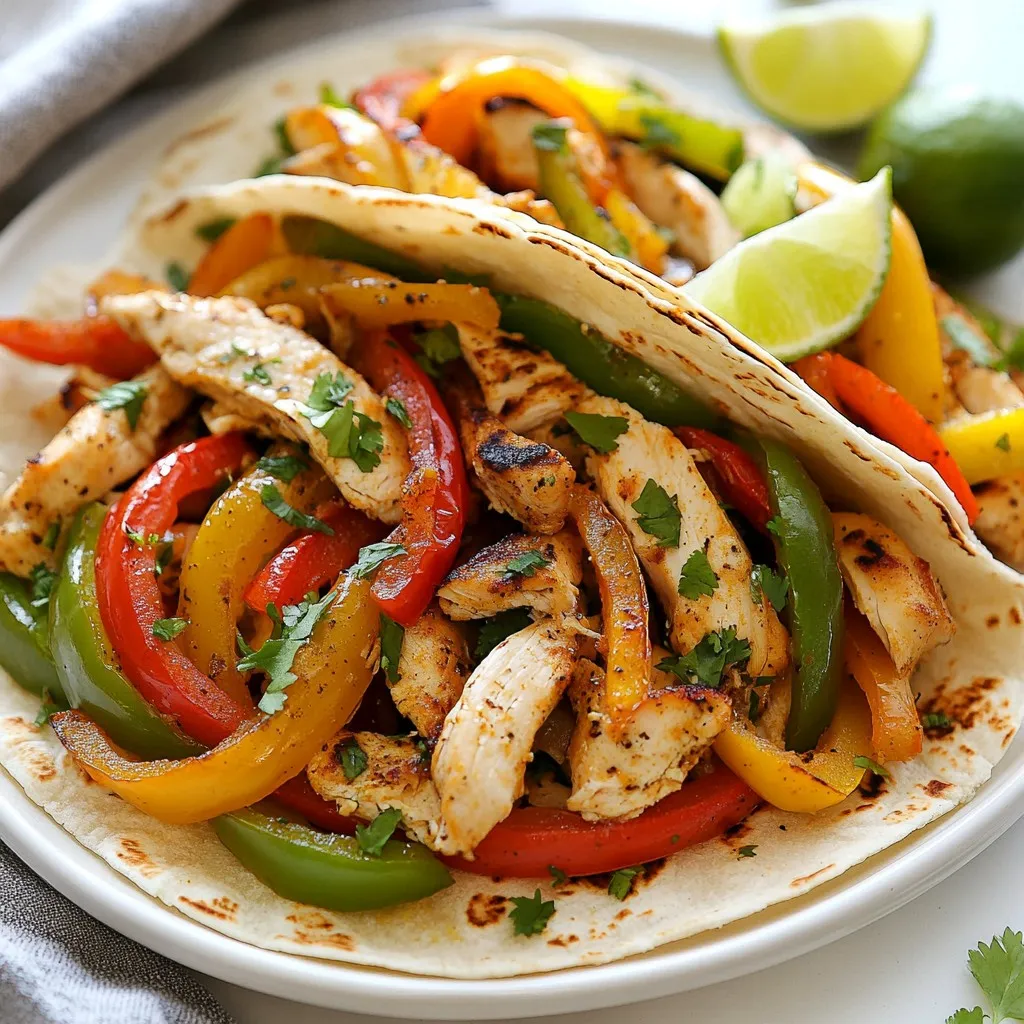 Quick and flavorful chicken fajitas with bell peppers and onions, served in warm tortillas.