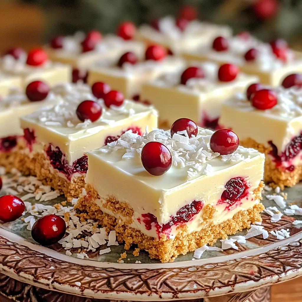 When serving, arrange the bars on a pretty plate. For a pop of color, sprinkle extra dried cranberries on top. You can also dust with shredded coconut for a nice touch. Serve the bars chilled to keep them firm and delicious. This will impress your guests and make the dish look fancy!