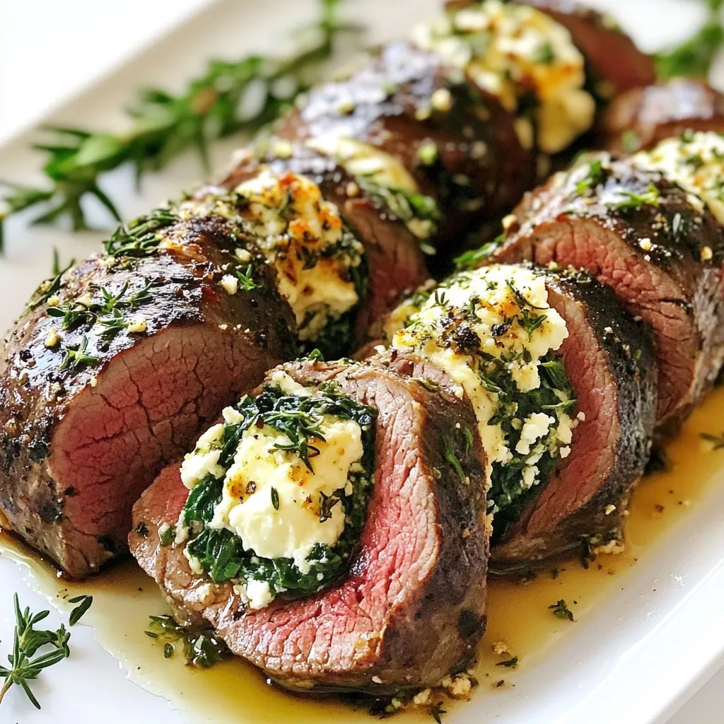 A delicious beef tenderloin filled with a creamy herb stuffing, perfect for a special occasion.
