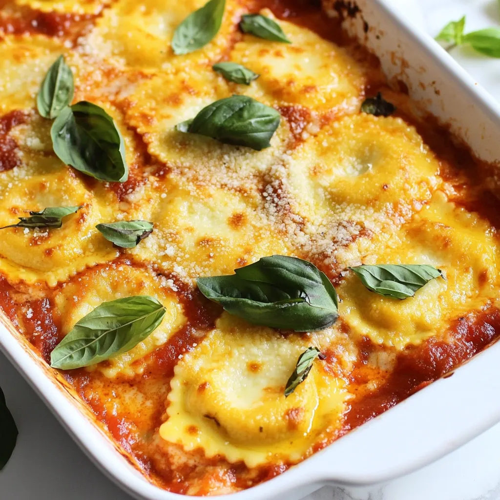If desired, garnish your ravioli lasagna with fresh basil leaves to add a pop of color and flavor before serving.