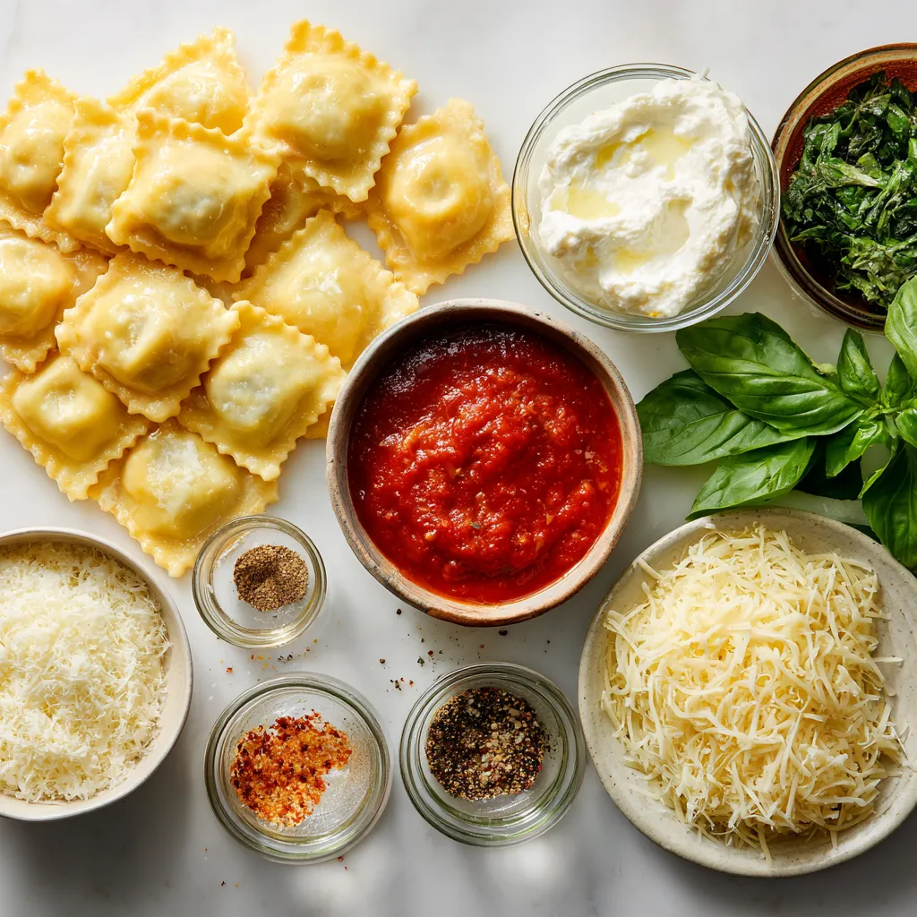 To make this ravioli lasagna, you need a few key ingredients. Start with two packages of refrigerated cheese ravioli. These will save you time and make the dish creamy. You’ll also need marinara sauce, which adds rich flavor.