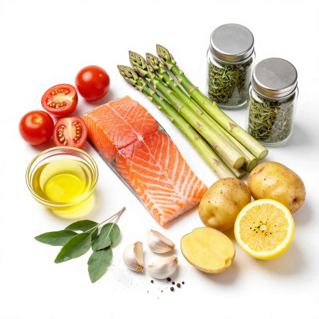 These ingredients work together to create a bright and fresh flavor. Salmon is rich in omega-3 fatty acids, which are great for your heart. The lemon adds a nice zing, while the herbs bring warmth to the dish. Cherry tomatoes and asparagus not only taste great but also add color and nutrition. Baby potatoes round out the meal, making it hearty and filling.