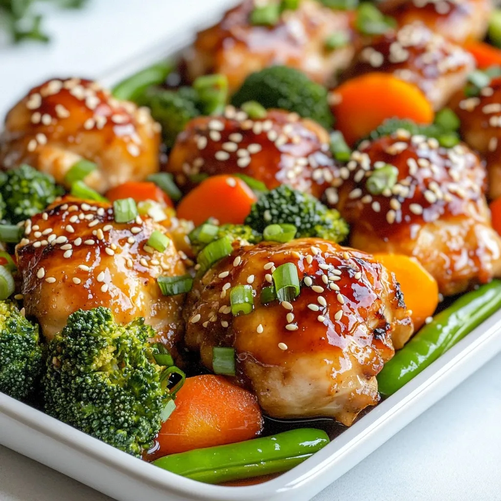 A delicious and easy one-pan meal featuring marinated chicken thighs and colorful vegetables, perfect for a family dinner.