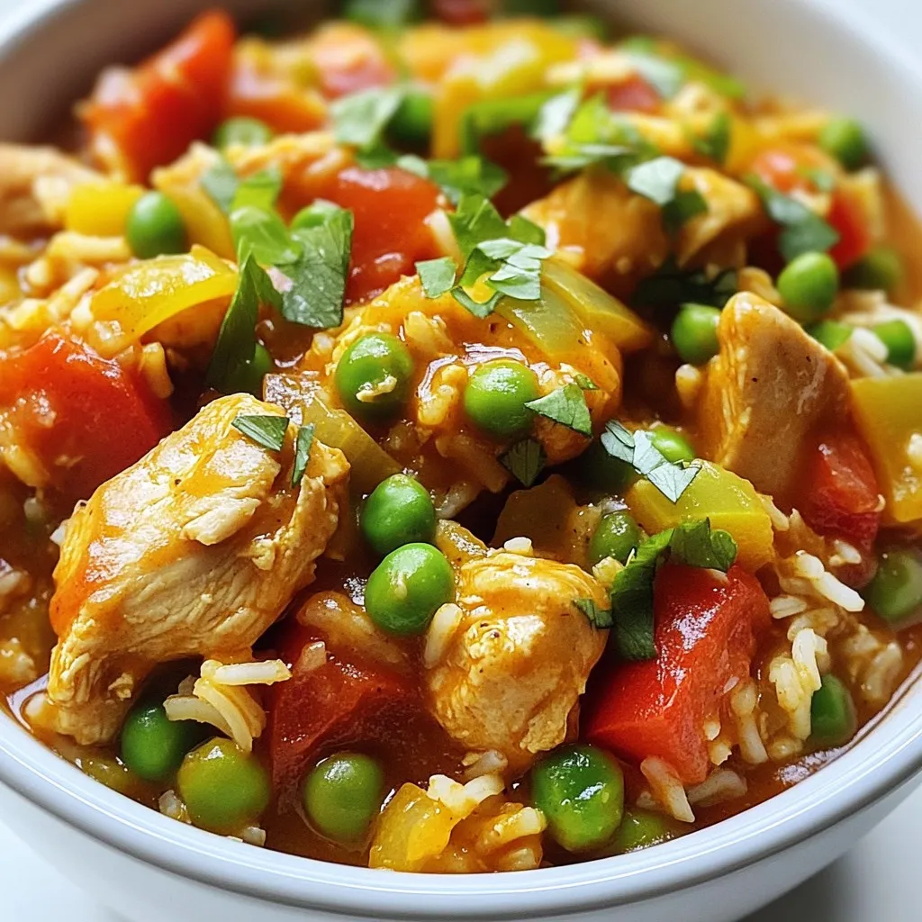 A flavorful and hearty dish made with chicken, rice, and vegetables, cooked slowly for a delicious meal.