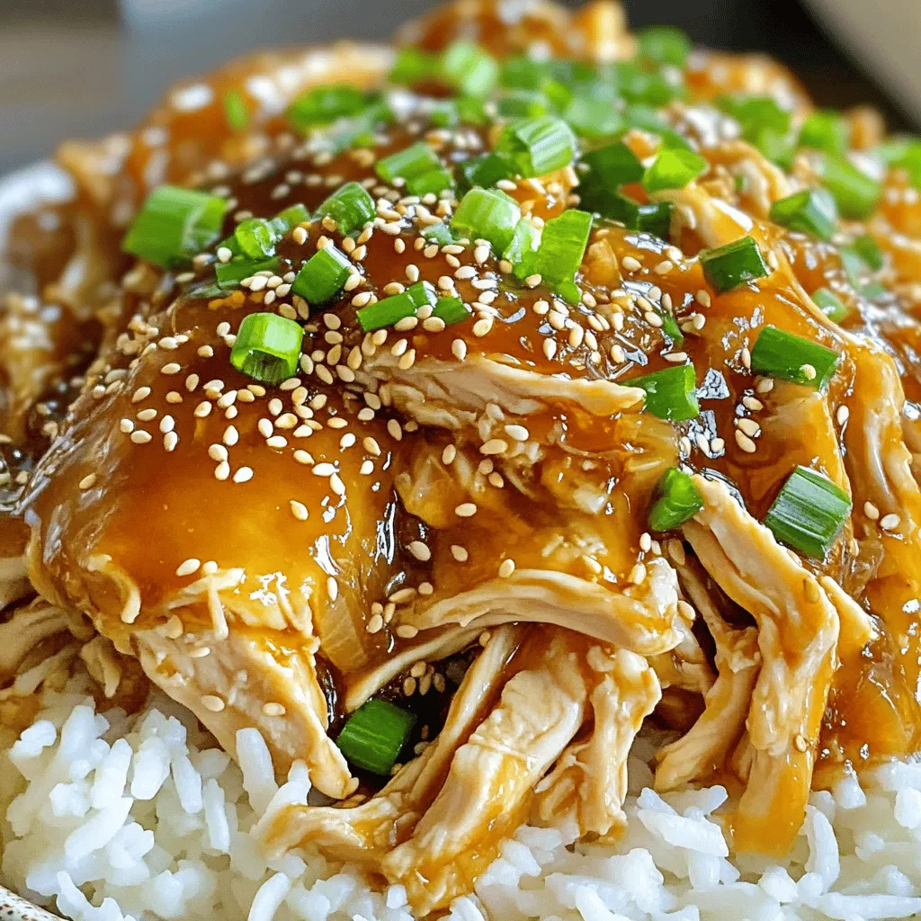 After cooking, use tongs or a slotted spoon to lift the chicken out. Place it on a cutting board. Use two forks to shred the chicken into small pieces. In a small bowl, mix 2 tablespoons of cornstarch with 1/4 cup of water. Stir until it’s smooth. Slowly add this mix to the sauce left in the slow cooker. Switch the slow cooker to high heat. Leave it uncovered for 10-15 minutes until the sauce thickens. Return the shredded chicken back into the thickened sauce. Stir well so all the pieces are coated. Serve the chicken over warm rice and enjoy!