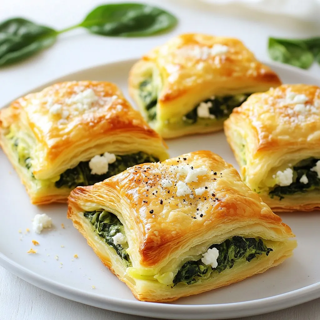 For serving, arrange the warm pastries on a rustic wooden board. This adds a homey touch. Garnish with fresh spinach leaves and a sprinkle of Parmesan cheese. This makes the dish pop visually.