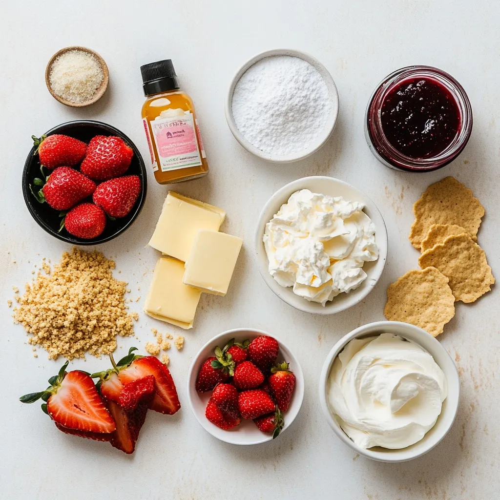 Using fresh strawberries makes a big difference. They add bright flavor and color. High-quality cream cheese gives the filling a rich taste. Unsalted butter helps control the salt level in the graham cracker crust. I always recommend using freeze-dried strawberries for that extra crunch. They add a fun texture and a burst of strawberry flavor. The combination of these ingredients creates a delightful treat that will impress anyone.