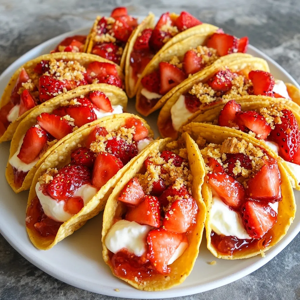 For a fun presentation, serve the tacos on a bright platter. You can add fresh mint leaves under the tacos for color. Arrange whole strawberries around them for extra charm.