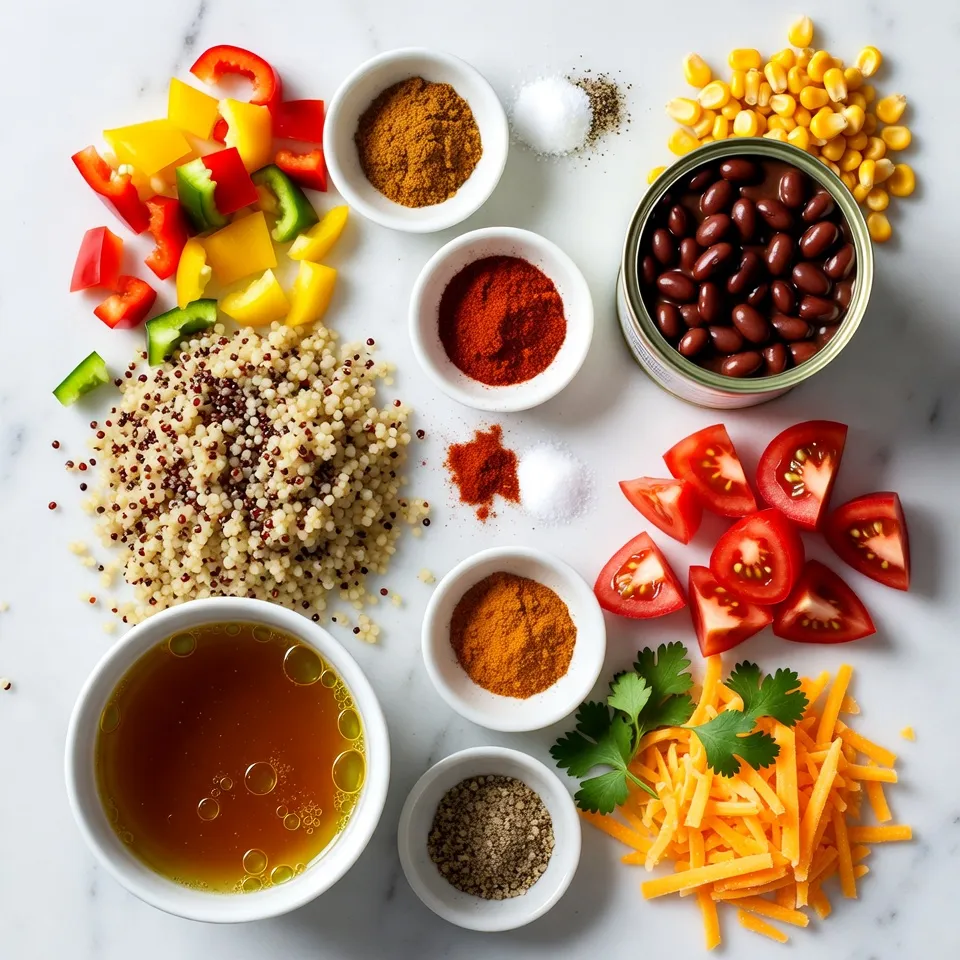 To make a tasty stuffed bell pepper casserole, gather these main ingredients: - 4 large bell peppers, diced (mix colors for fun) - 1 cup quinoa, rinsed - 2 cups low-sodium vegetable broth - 1 can (15 oz) black beans, rinsed and drained - 1 cup corn (fresh, frozen, or canned) - 1 cup diced tomatoes (canned or fresh) - 1 tablespoon chili powder - 1 teaspoon ground cumin - 1/2 teaspoon smoked paprika - Salt and black pepper to taste - 1 1/2 cups shredded cheese (sharp cheddar or Monterey Jack) - Fresh cilantro or parsley, chopped (optional for garnish) You can switch things up with these optional ingredients: - Swap quinoa for brown rice or couscous. - Add chopped onions or garlic for extra flavor. - Toss in some diced zucchini or mushrooms for more veggies. - Use different cheese types like mozzarella or pepper jack for variety. This dish packs a punch with nutrients. Each serving offers: - Protein: From black beans and quinoa - Fiber: From beans, corn, and peppers - Vitamins: Rich in vitamin C and antioxidants from bell peppers and tomatoes - Healthy fats: Can add avocado or nuts as toppings This casserole is a wholesome family meal. You can feel great about serving it! {{ingredient_image_2}} First, preheat your oven to 375°F (190°C). This helps the casserole bake evenly. Next, rinse one cup of quinoa in cold water. Place it in a medium pot with two cups of low-sodium vegetable broth. Heat over medium and bring to a boil. Lower the heat and cover. Let it simmer for about 15 minutes. When the liquid is gone, fluff the quinoa with a fork. Now, take four large bell peppers. You can use any colors you like. Dice them into small pieces. In a big bowl, mix the diced peppers, cooked quinoa, one can of black beans, one cup of corn, and one cup of diced tomatoes. Add one tablespoon of chili powder, one teaspoon of ground cumin, and half a teaspoon of smoked paprika. Don’t forget to season it with salt and pepper to taste. Stir until all the ingredients are well mixed. Grab a greased 9x13 inch casserole dish. Transfer the colorful mixture into the dish. Spread it out evenly, so it cooks well. Sprinkle one cup of shredded cheese on top. This will give a nice cheesy layer when baked. Cover the dish tightly with aluminum foil. Bake it in the preheated oven for 25 minutes. After 25 minutes, carefully remove the foil. This step lets the cheese brown a bit. Add the remaining half cup of cheese on top. Bake uncovered for another 10-15 minutes. Your casserole is done when the cheese is melted, bubbly, and golden in spots. Once baked, remove the casserole from the oven. Let it cool for about 5-10 minutes. This cooling time helps it set up nicely. For a fresh look, sprinkle chopped cilantro or parsley on top. You can serve it straight from the dish for a family-style meal. For added creaminess, consider a dollop of sour cream or slices of avocado on the side. Enjoy your tasty stuffed bell pepper casserole! To make perfect quinoa, start with rinsing it well. Rinsing removes the bitter coating called saponin. Use a ratio of 1 cup quinoa to 2 cups vegetable broth. This gives a soft, fluffy texture. Bring the broth to a boil, then lower the heat. Cover it and let it simmer for about 15 minutes. After all the liquid is soaked up, fluff it with a fork. This will keep the grains separate and light. Cheese can change the flavor of your casserole. Sharp cheddar gives a strong taste. Monterey Jack has a milder, creamy flavor. Try mozzarella for a stringy, gooey melt. For a fun twist, use pepper jack for a spicy kick. You can even mix different cheeses for depth. Just remember to use about 1 ½ cups total for the best results! To get the best bake, first preheat your oven to 375°F (190°C). Use a greased 9x13 inch dish to help with clean-up. Cover the dish with foil for the first 25 minutes. This keeps moisture in, making the dish tender. After removing the foil, add more cheese for a golden, bubbly top. Bake it uncovered for another 10 to 15 minutes. Let it cool for a few minutes before serving. This helps the flavors blend nicely. Pro Tips Choose Colorful Peppers: Using a mix of bell pepper colors not only enhances the visual appeal of your dish but also provides a range of flavors and nutrients. Perfectly Cooked Quinoa: Ensure that the quinoa is rinsed thoroughly before cooking to remove its natural coating, saponin, which can make it taste bitter. Layering Cheese: For a beautifully melted and bubbly cheese topping, add half the cheese before baking and the other half during the last 10-15 minutes of cooking. Rest Before Serving: Allowing the casserole to rest for a few minutes after baking helps it set up nicely, making it easier to serve and enhancing the flavors. {{image_4}} You can easily make this dish vegetarian or vegan. Use vegetable broth and skip the cheese for a vegan meal. You can substitute the cheese with vegan cheese options made from nuts or soy. This keeps the dish creamy and flavorful without any animal products. Add more veggies like zucchini or mushrooms for extra texture. This casserole is naturally gluten-free. Quinoa is a great base that offers a nice texture. Be sure to check that your vegetable broth is gluten-free. You can also use rice if you prefer. It cooks well and matches the flavors of the dish. You can add different proteins to this casserole to suit your taste. Ground turkey works well and keeps it light. If you want more flavor, consider adding sausage. Cook it first and mix it in with the other ingredients. You can even try shredded chicken or beef if you like. Each protein adds its own unique taste to the dish, making it even more satisfying. After enjoying your stuffed bell pepper casserole, store any leftovers properly. Let the casserole cool for about 10 minutes. Then, cover it tightly with plastic wrap or aluminum foil. You can also transfer it to an airtight container. This keeps the flavors fresh and prevents drying out. To reheat your leftover casserole, preheat your 