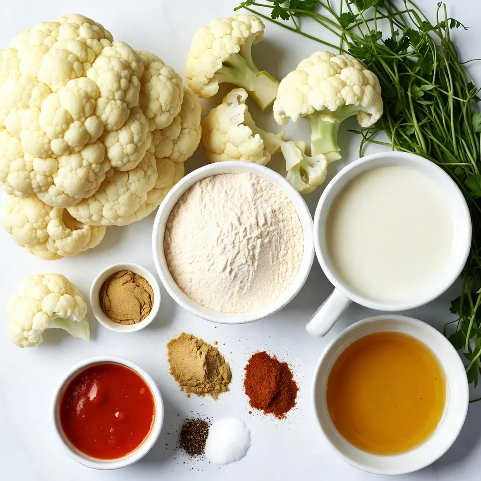 To make these bites, start with fresh cauliflower. Cut it into bite-sized florets. You want them small enough to cook well but big enough to hold sauce. Next, choose your flour. All-purpose flour works well, but chickpea flour is a great gluten-free option. Finally, grab some almond milk or any plant-based milk. This will help create a smooth batter to coat the florets.