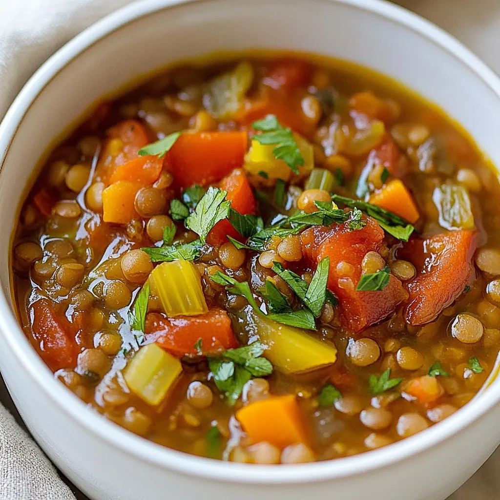 - 1 cup green or brown lentils, thoroughly rinsed - 1 medium onion, finely diced - 2 garlic cloves, minced - 2 medium carrots, diced - 1 celery stalk, diced - 1 red bell pepper, diced - 1 can (14 oz) diced tomatoes, with juices - 4 cups vegetable broth - 1 teaspoon ground cumin - 1 teaspoon smoked paprika - 1 teaspoon dried oregano - Salt and freshly ground black pepper, to taste - 2 tablespoons extra-virgin olive oil - Juice of 1 fresh lemon - Fresh parsley, chopped for garnish Lentils serve as the star of this dish. They are full of protein and fiber. I love using green or brown lentils. They hold their shape well during cooking. Next, the mix of veggies adds color and flavor. I choose a medium onion, garlic, carrots, celery, and red bell pepper. Each one adds its unique taste to the soup. The diced tomatoes bring a nice acidity. They also help create a lovely base for the soup. Vegetable broth adds depth. It provides a rich background flavor. Olive oil enhances the taste and helps with cooking. Lastly, lemon juice brightens the soup. It adds a fresh note that lifts the flavors. - This recipe makes 4 servings. - Adjust the amounts for larger or smaller servings. - You can double or halve the recipe easily. If you want to make more, just double all the ingredients. If you want less, cut them in half. This soup is great for meal prep. You can store leftovers for later. It tastes even better the next day! {{ingredient_image_2}} 1. Rinse and measure lentils Start by rinsing 1 cup of green or brown lentils. This removes grit and dirt. After rinsing, measure the lentils to ensure you have the right amount. 2. Dice vegetables Dice one medium onion, two medium carrots, one celery stalk, and one red bell pepper. Also, mince two garlic cloves. This mix of veggies adds flavor and nutrition. 3. Gather all ingredients Lay out all your ingredients. You will need the lentils, diced vegetables, a can of diced tomatoes, vegetable broth, spices, olive oil, lemon juice, salt, black pepper, and fresh parsley for garnish. 1. Sautéing the aromatics In a large pot, heat 2 tablespoons of extra-virgin olive oil over medium heat. Once hot, add the diced onion. Sauté the onion for about 5 minutes until it turns translucent. Then, add the minced garlic, carrots, celery, and red bell pepper. Stir and cook for 5-7 minutes until the veggies soften and smell great. 2. Adding lentils and liquids Next, add the rinsed lentils to the pot. Pour in the can of diced tomatoes with their juices. Then add 4 cups of vegetable broth. Sprinkle in 1 teaspoon of ground cumin, 1 teaspoon of smoked paprika, and 1 teaspoon of dried oregano. Mix everything well to combine. 3. Simmering for flavor development Increase the heat until the mixture boils. Once boiling, lower the heat to a gentle simmer. Cover the pot and let it simmer for about 30-35 minutes. This allows the lentils to cook and the flavors to blend. 1. Blending for creaminess If you want a creamier soup, use an immersion blender to blend it slightly. You can also transfer a portion to a regular blender. Blend until smooth and return it to the pot. 2. Seasoning adjustments Finally, season the soup with salt and freshly ground black pepper to taste. Squeeze in the juice of one fresh lemon for brightness. Stir well and heat for an additional 5 minutes. This step helps the flavors come together beautifully. To boost the taste of your vegan Mediterranean lentil soup, use the right spices and herbs. Ground cumin adds warmth. Smoked paprika gives a nice, smoky depth. Dried oregano pairs perfectly with the tomatoes. Try adding fresh herbs like basil or thyme for a fresh twist. For cooking techniques, sauté your vegetables in olive oil first. This builds a rich base. Always cook lentils gently. Avoid high heat to keep them tender. A gentle simmer helps the flavors blend well. A common error is overcooking or undercooking lentils. Overcooked lentils turn mushy, while undercooked ones remain hard. Aim for a tender, but not falling apart texture. Check them at about 30 minutes. Balancing seasonings is key too. Taste your soup before serving. Adjust salt and pepper to your liking. A hint of lemon juice brightens the flavors. Don’t skip this step! For a stunning presentation, serve the soup in large, colorful bowls. Drizzle a bit of olive oil on top for shine. Add a sprinkle of fresh parsley for color. Pair your soup with crusty bread for a complete meal. A side salad can add freshness. Choose greens like arugula or spinach for a nice crunch. This makes your meal balanced and appealing. Pro Tips Use Fresh Herbs: Fresh parsley is a great garnish, but consider adding fresh basil or cilantro for an extra layer of flavor. Enhance with Acid: A splash of red wine vinegar or apple cider vinegar can brighten up the flavors even more than lemon juice. Store Properly: This soup keeps well in the fridge for up to 5 days and freezes well, making it perfect for meal prep. Adjust Consistency: If you prefer a thicker soup, let it simmer longer without the lid, or blend in more lentils for a creamier texture. {{image_4}} You can change the lentils. Try red lentils for a quicker cook time. You can also use chickpeas or black beans for a different taste. For grains, swap lentils with quinoa or farro. Both add a nice texture. Switch up your veggies too. You can add spinach, kale, or zucchini. These add color and extra nutrients. If you want a richer taste, add sweet potatoes or turnips. Want some heat? Add red pepper flakes or cayenne. This will give your soup a nice kick. You can also use fresh chili peppers if you prefer. For a twist on herbs, use fresh basil or thyme. These herbs change the flavor nicely. You can also mix in some fresh mint for a refreshing touch. If you need a gluten-free option, check your broth. Make sure it is gluten-free. Lentils are naturally gluten-free, so you’re good there. For a low-sodium version, use low-sodium broth. You can also skip added salt. Use lemon juice and 