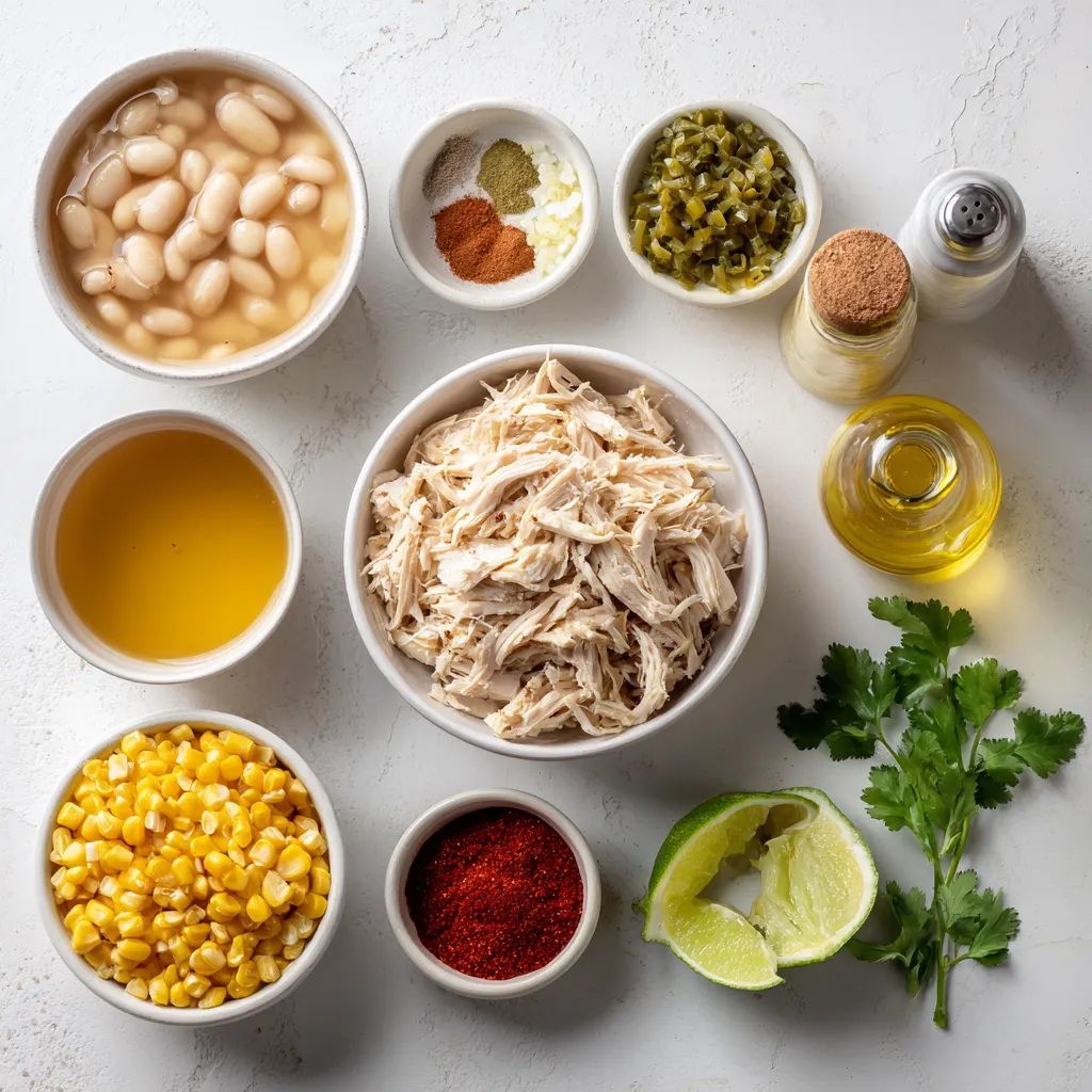 The cooked chicken gives this chili its heartiness. I often use rotisserie chicken for ease, but any cooked chicken works. White beans add creaminess and protein. The chicken broth forms the base, making it rich and flavorful. Diced green chiles bring heat and zest. Onion and garlic add depth to the flavor. Spices like cumin and oregano give warmth and aroma. Corn adds sweetness and texture. Finally, the heavy cream or coconut cream makes it rich and smooth. Each ingredient plays a key role in making this chili a comforting dish.
